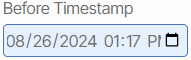 Before Timestamp excludes events that happened after a set date. After the fields are set, only events that happened before the selected time value are displayed.