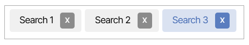 When custom search filters are created, they are represented as numbered tabs with the word Search displayed on them. Clicking these tabs anywhere other than on the displayed “x” selects them and populates the fields with the assigned values. Clicking the “x“ deletes the search template and removes it from the list. Clicking Tail after creating or selecting a custom search will revert the filter values to the state saved via the Tail tab.
