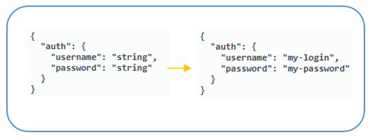 - In the request body, type the username and password credentials replacing the default string text.