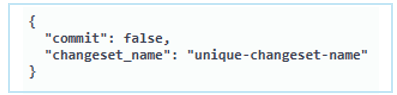 - To create a new changeset, the commit must be set to false, and the changeset_name must be set to a unique name.