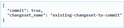 - To commit a changeset to the system, the commit field must be set to true, and the changeset_name must be set to the changeset the user wants to commit.