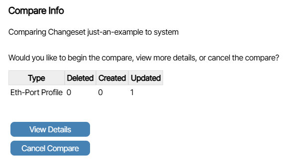 Compare to Current: Compares the changes in the changeset to the current system state in the form of a tabular summary.