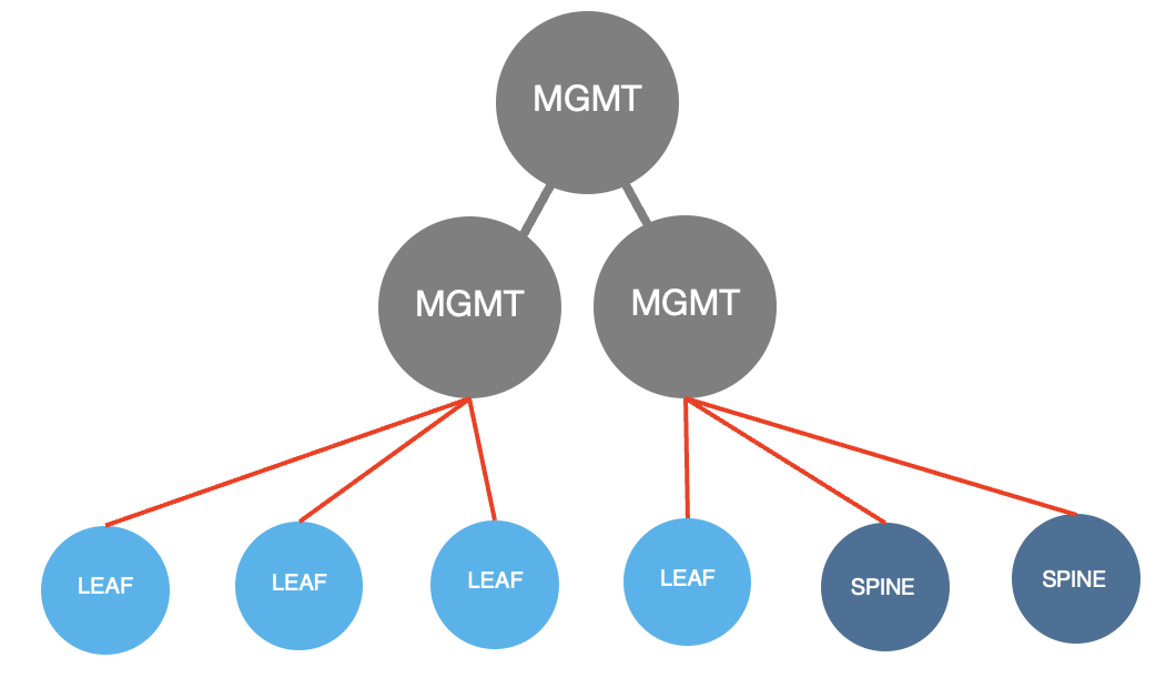 Verity supports the management network used to connect to each fabric device for programming and gathering telemetry. Each managed switch is connected typically at 1 Gigabit to a single Layer-2 VLAN extended across a small number of switches.