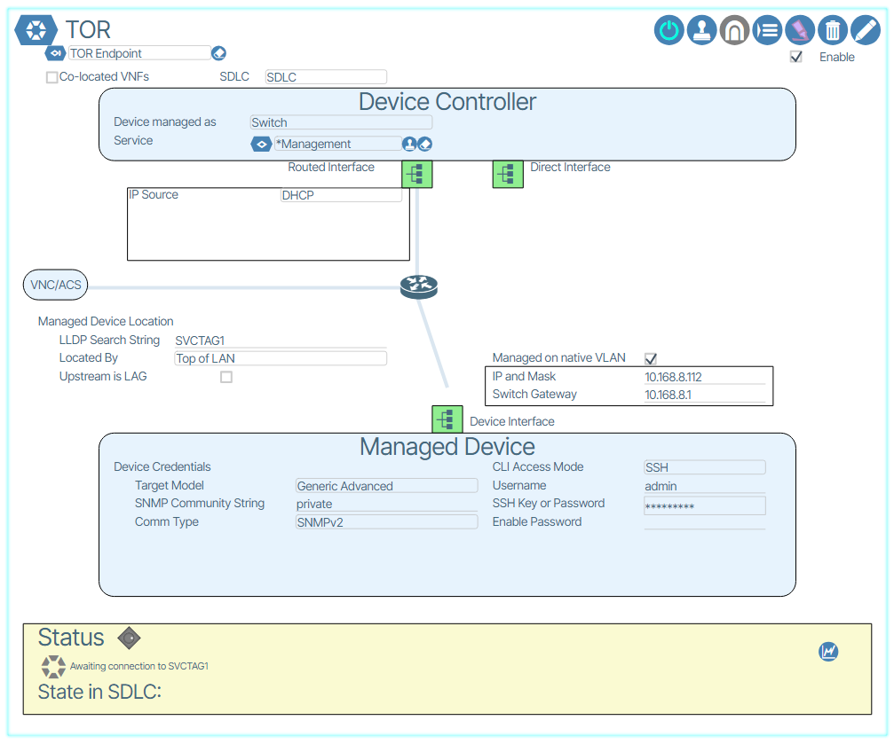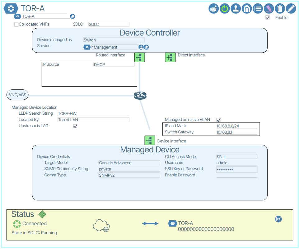 - The ZTP process performs a connectivity test to the SDLC VM where the Device Controller is located over the connected switch port.