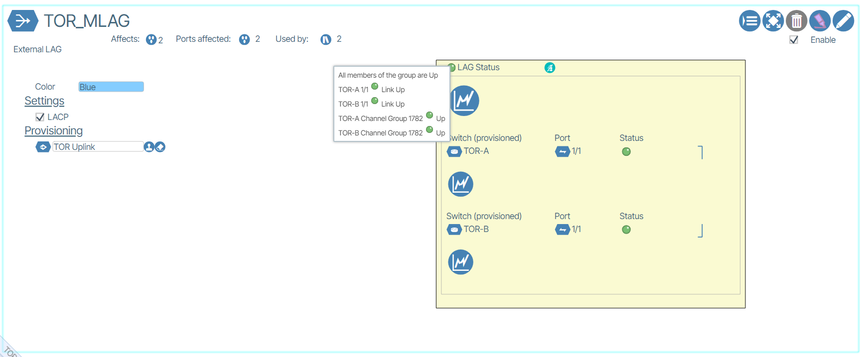 . Take note that the TOR-A is designated as connected via LAG by checking the option. -