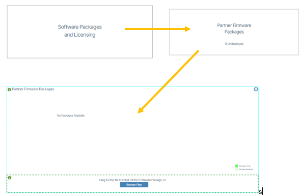 Go to the Admin page button located at the upper right side of the Verity dashboard UI and click Software Packages and Licensing. Then select Partner Firmware Packages. In the window that appears use the Browse Files/Drag-Drop interface to upload the BeyondEdge pre-packaged OEM firmware file