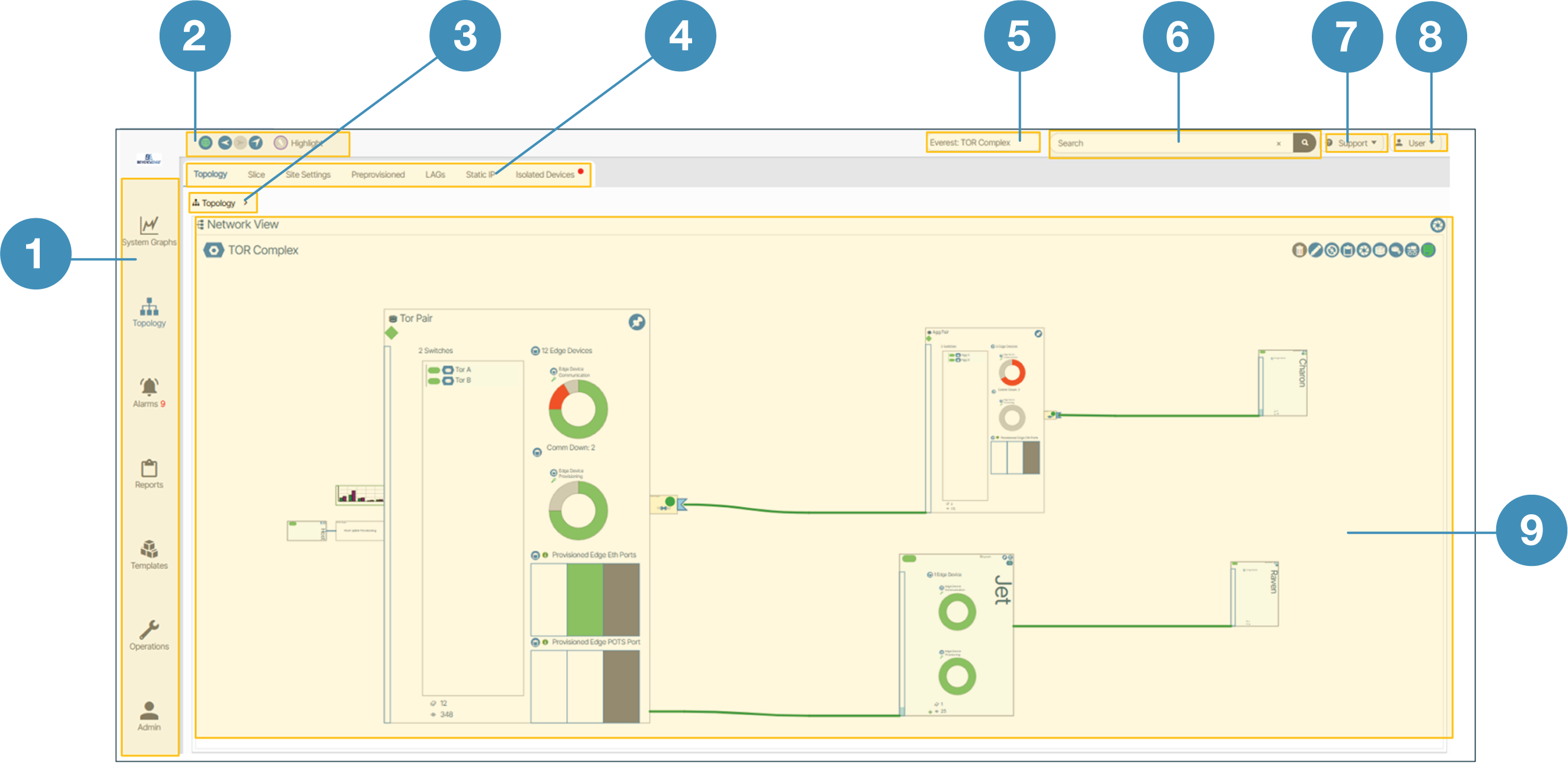 Verity workspace is the βsingle pane of glassβ in which you set up services, profiles and service bundle templates and apply these objects to the networkβs βService Endpointsβ. You can zoom into each section and view more options within each section such as: adding, editing, and deleting elements related to your LAN.