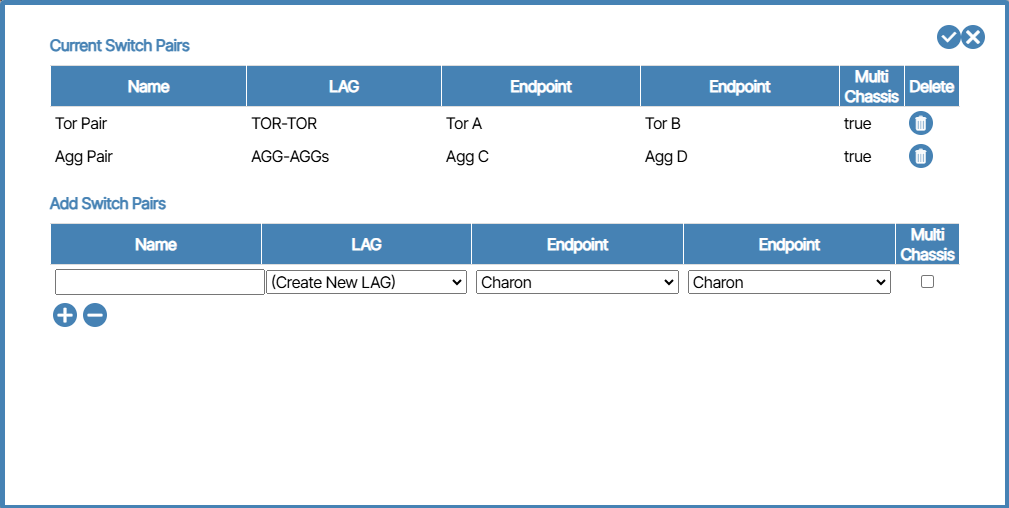 To create a Switch Pair, you must fill out the following form fields under Add Switch Pairs: