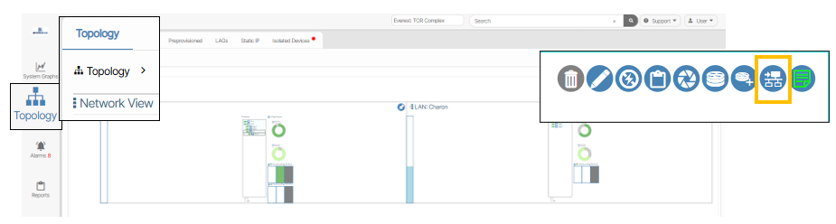 . This button is presented from the toolbar in the upper right from Topology/Topology/Network View