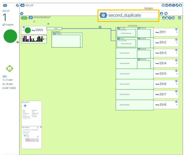 To assign a Bundle to an ONT select it from the Connected Bundle form as shown in the following image: