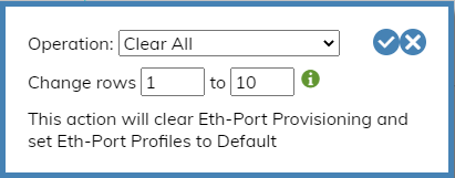 This setting clears Eth-Port Provisioning values and sets Eth-Port Profiles to default for a port or a consecutive list of ports.