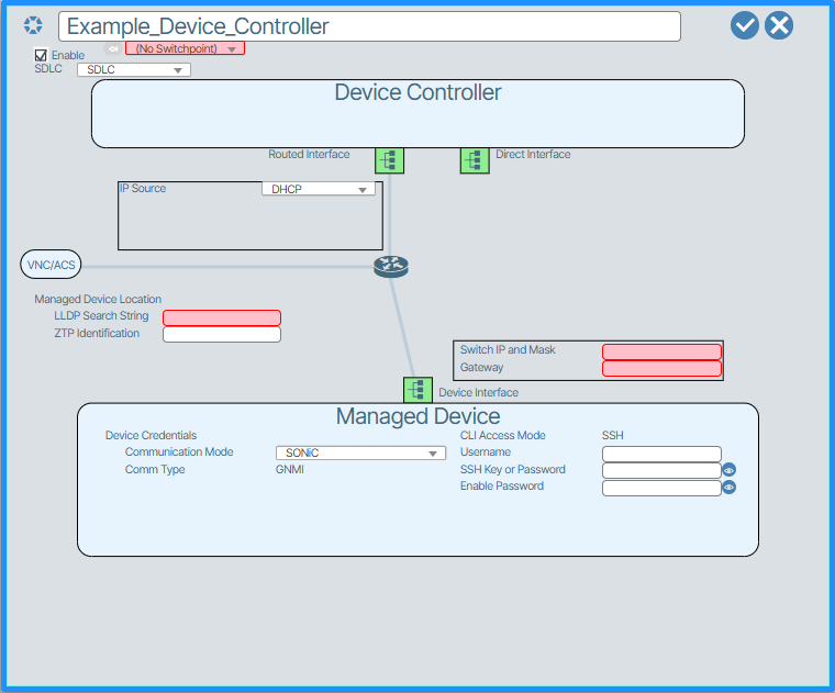 The following section describes other switchpoint management features. These are not required for device onboarding, but do give the user the ability to create provisioning for the switchpoint before the phyical device is detected and brought into the system. To proceed with the new device creation skip to the Device controller section below.