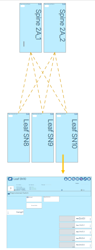 A Switchpoint is a logical location for a device in the network and represents a connection pointβsuch as where leaf 1 connects to spine 3. By designing a network using Switchpoints, the logical design remains independent of specific devices, allowing an operator to insert a device into the switchpoint by referring to either its serial number or a chassis id.