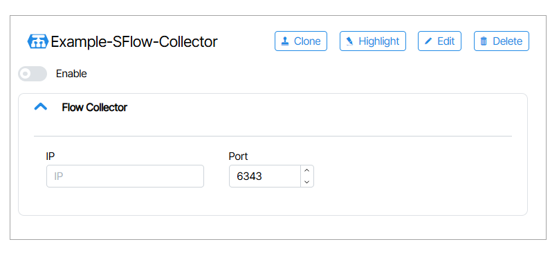 - Collector: Select the desired sFlow Collector (set it to the Collector you created in the previous steps)