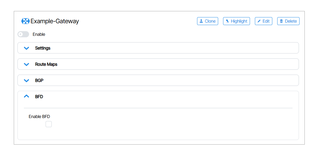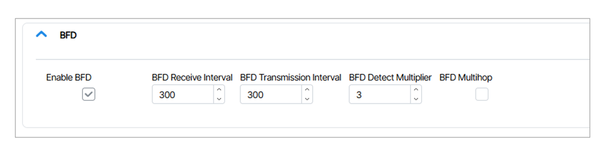 - BFD Detect Multiplier: Configure detection multiplier to determine packet loss.