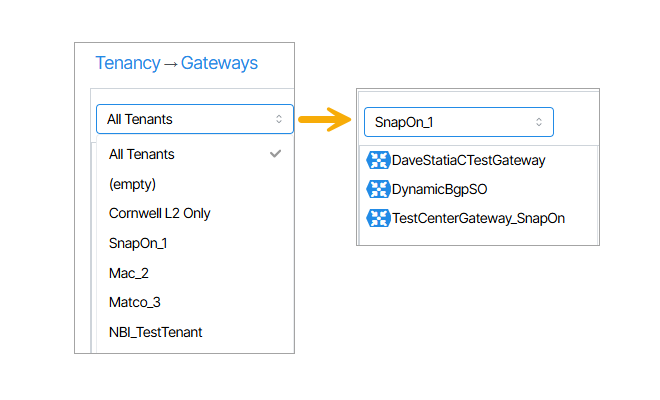 From within the Gateways window (Tenancy -> Gateways) select the Tenant to assign the Gateways to (