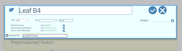 ). - In the Preprovisioned Switchpoint, replace the Device ID field with the new Serial Number or Service Tag (