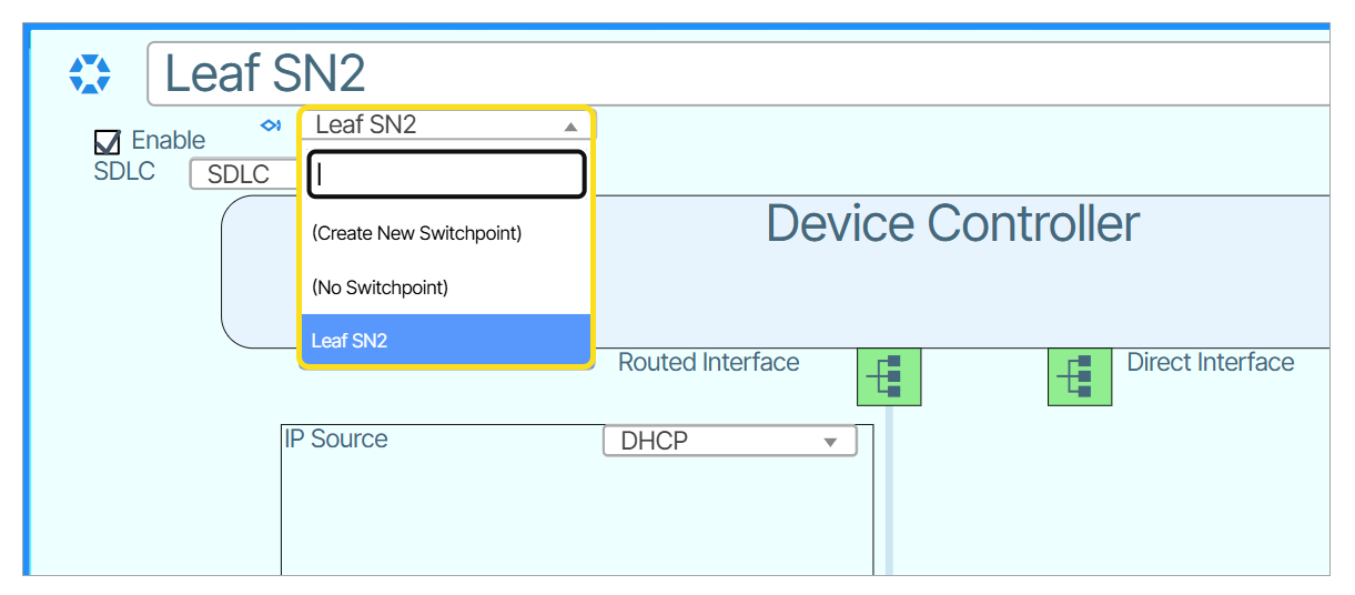 - While editing the Device Controller, select the Switchpoint field and assign the Switchpoint.