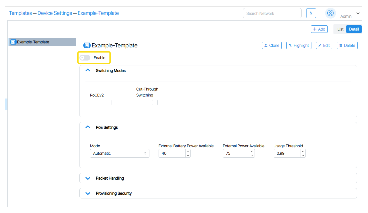 ). - Toggle the Enable switch to make the Template active (if desired) (