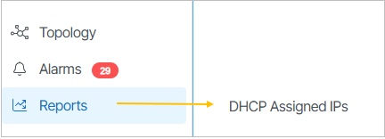 To view DHCP assigned IP addresses go to Reports/DHCP Assigned IPs