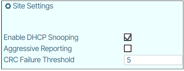 To enable DHCP snooping navigate to Topology/Site Settings and check the box next to Enable DHCP Snooping .