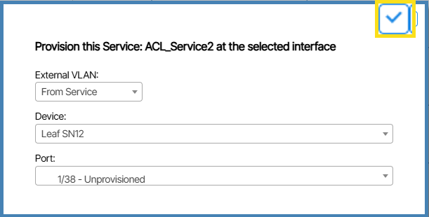 - In the window that appears, use the drop-down menus to select the (switch and) port to assign the Service to.