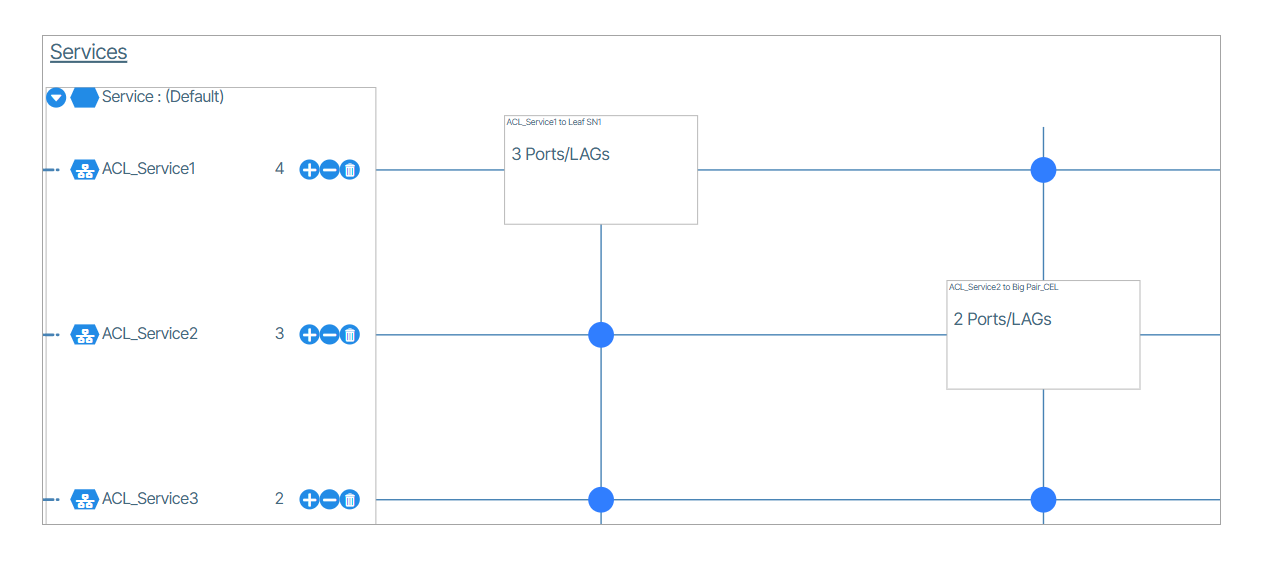 To summarize, Services are assigned to Eth Port Profiles and Eth Port Profiles are assigned to Leaf Ports/LAGs.