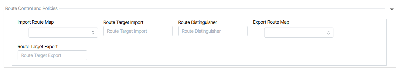 To set Route Target or Route Distinguisher values, select the respective field and type in the value.