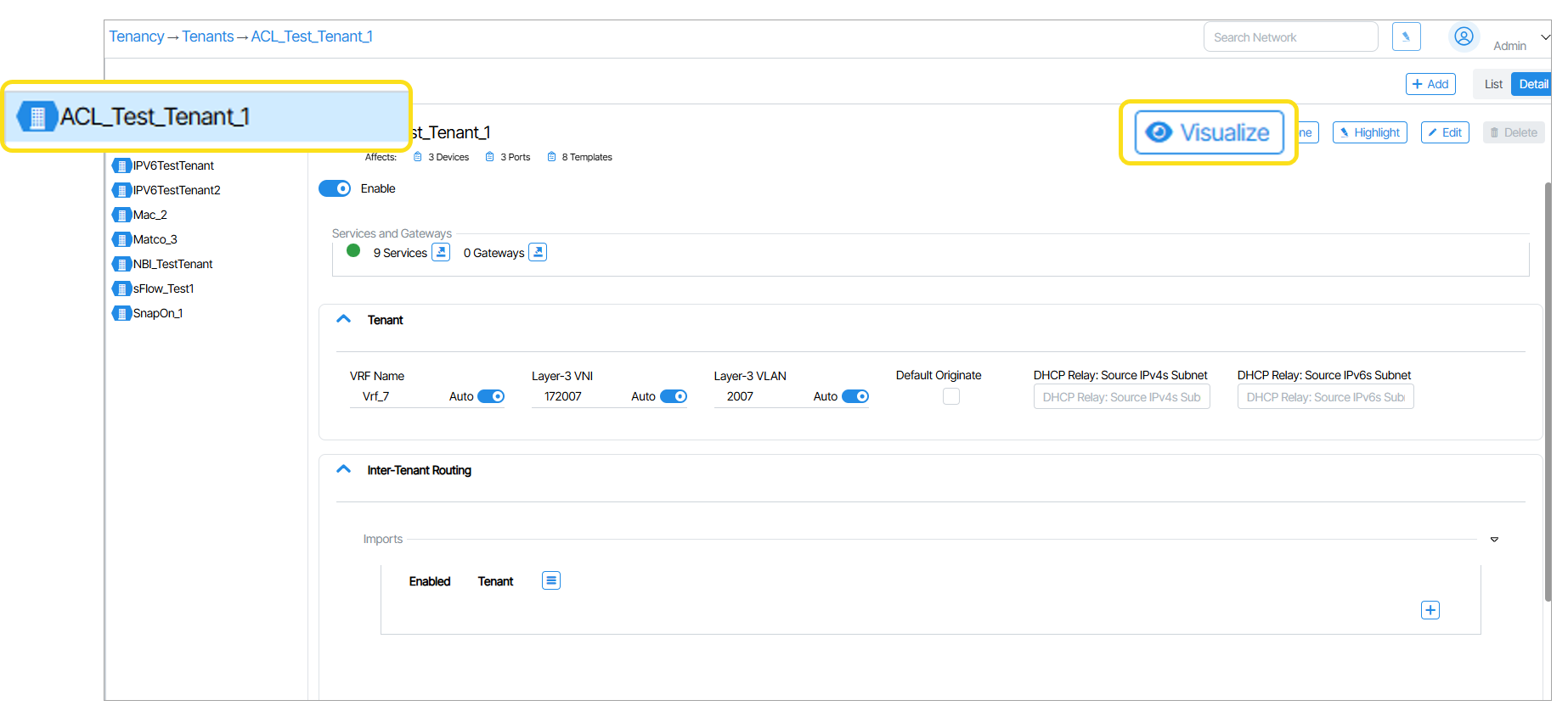 - Select a Tenant. In this example the Tenant chosen is named Corporate Network.