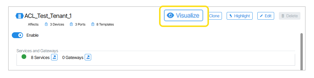 When a Tenant has multiple Service Groups and/or has Services/BGP Gateways provisioned across switches from more than one POD, the data is condensed into visual boxes that encapsulate connections.